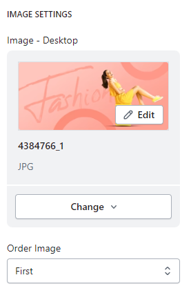 - Image – Desktop : Allow merchants to upload a image file .