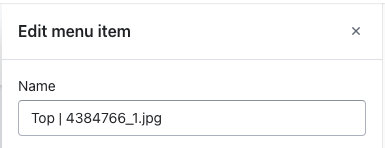 - In the navigation menu, enter the menu item name with format menu_item_name | image_name.extension_name (ex: Top | 4384766_1.jpg).
