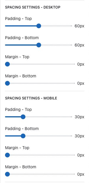 SPACING SETTINGS – DESKTOP AND MOBILE