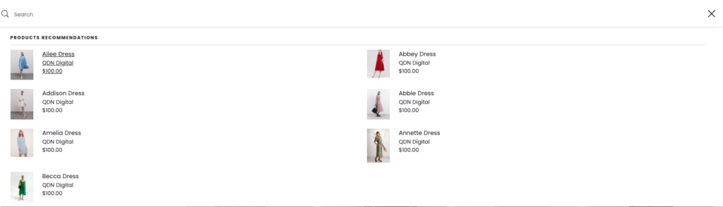 QDN Theme provides two types of search behavior: default search and predictive search (we recommend using predictive search to improve the user experience).